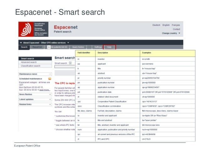 Search term(s) Tooltip Clear. WELCOME Welcome to the European Patent Register, the place to find procedural and legal status data on patent applications handled by the European Patent Office. If this is the first time you are consulting. Obsahuje informace o více než.
